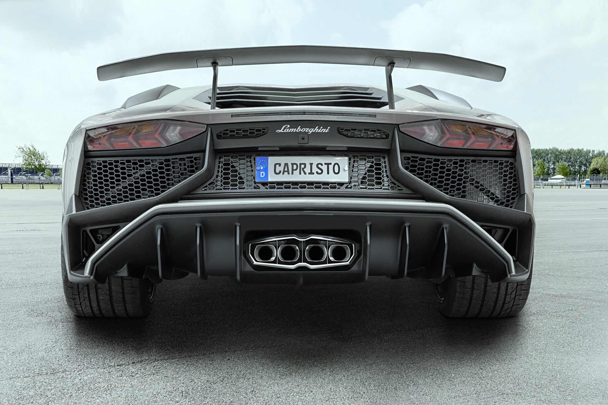 The CAPRISTO-designed carbon-fiber and stainless steel exhaust frame was created to complement and integrate the CAPRISTO Exhaust system into the Aventador's rear fascia and diffuser. It will only work with this specific application.
